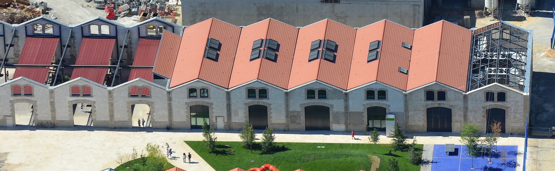 de bâtir de nouvelles pratiques institutionnelles tout en conservant le vocabulaire industriel du 19ème siècle propre au site, la plupart de la structure et des détails d’origine des Forges ont été préservés et rénovés. Les colonnes en fonte et les treillis en acier structurels de l’ancienne fonderie ont été maintenus et stabilisés, tandis que la toiture à pignons a été enlevée et revêtue de tuiles romaines d’origine, en terre cuite.. Une nouvelle cour extérieure est située à l’extrémité ouest de la structure, à l’intérieur même du bâtiment originel. Cet espace extérieur polyvalent comprend un café et un espace collectif dédié aux conférences et aux concerts.